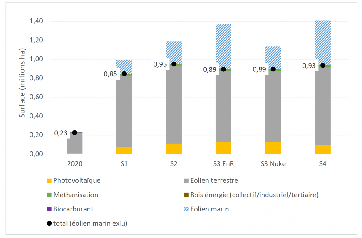 AdemeL’Ademe publie une série de rapport sur l’impact des énergies renouvelables sur les sols en France. D’ici 2050, entre 1,5 % et 1,7 % du territoire métropolitain pourrait accueillir des infrastructures de production d’énergie et les surfaces nécessaires à la production de biomasse énergie pourraient être multipliées par quatre par rapport à aujourd’hui.