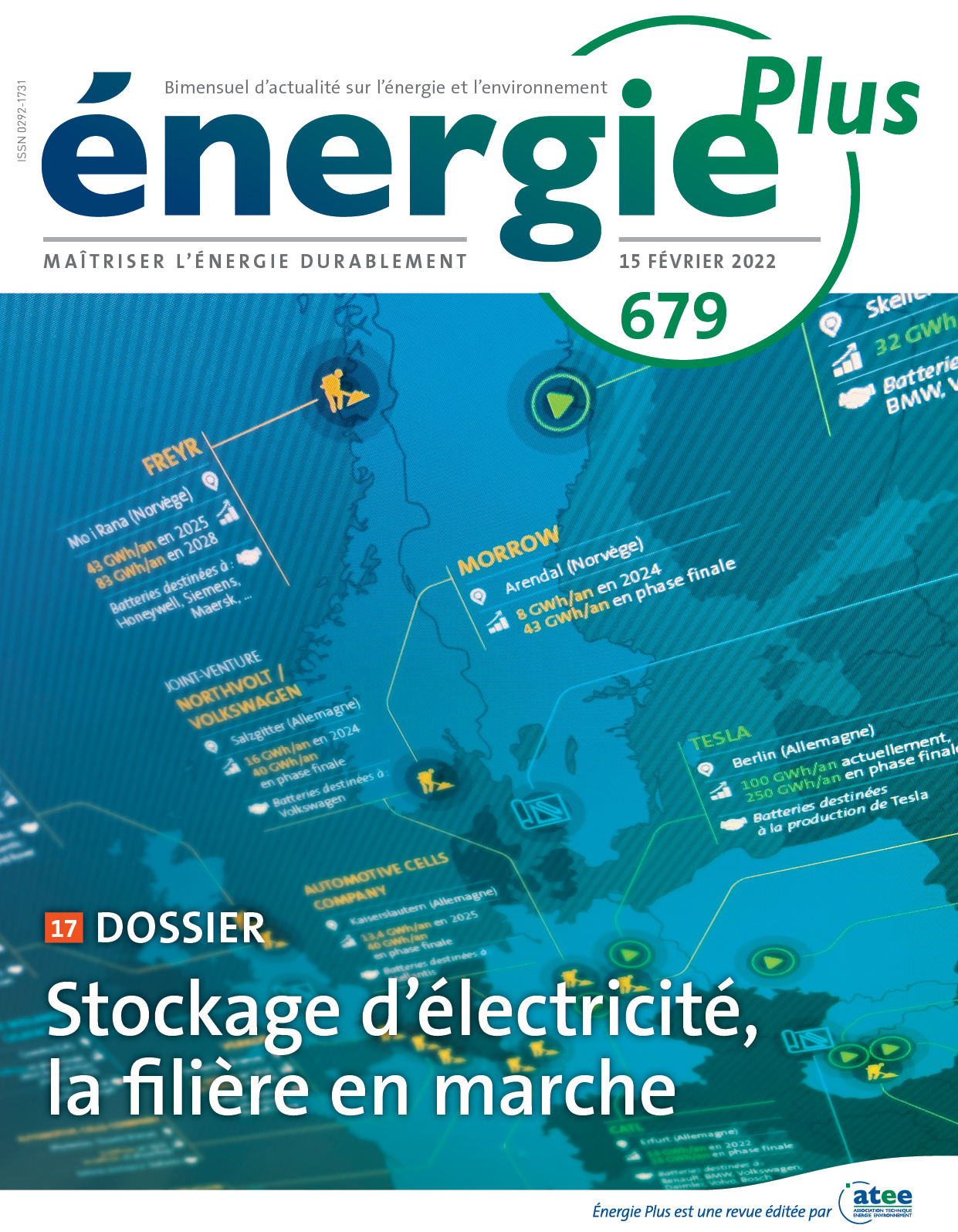 Olivier Guin / Energie Plus Souligné par de nombreux et récents rapports, le stockage d’électricité paraît indispensable pour répondre aux besoins accrus de flexibilité des réseaux électriques et d’intégration des énergies renouvelables (page 18). Le marché du stockage commence ainsi à se développer, porté notamment par le segment de l’électromobilité (page 28). En Europe, quelques gigafactories ont déjà vu le jour, et de nombreuses sont en cours de construction (page 20). Le recours au stockage peut également être pertinent pour stabiliser la fréquence du réseau électrique à moindre coût (page 22), ou pour décarboner certaines activités nécessitant encore des groupes électrogènes diesel (page 23). La R&D dans ce secteur reste toujours en pleine ébullition afin de concevoir des dispositifs les plus performants, à l’image du système de stockage de l’électricité sous-marin de Segula Technologies (page 24). Enfin, la technologie vehicule-to-grid pourrait contribuer à ajuster en temps réel l’équilibre production-consommation. RTE a en effet confirmé ce potentiel en autorisant la participation de véhicules électriques du parc à la réserve primaire (page 26).